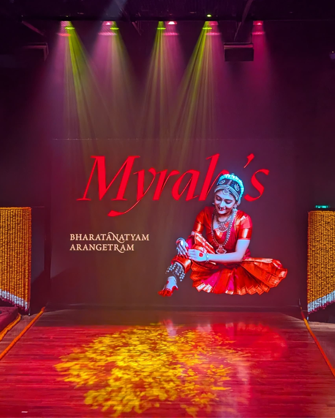 Myra’s Arangetram marked a powerful milestone in her Bharatanatyam journey — a celebration of discipline, expression, and tradition. The setting needed to reflect both elegance and cultural depth.