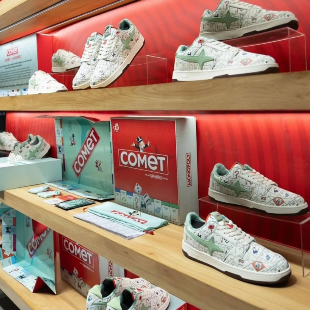 Comet is a culture-led sneaker brand that thrives on community, storytelling, and immersive retail. Monopoly, one of the world’s most iconic board games, is synonymous with play, nostalgia, and cultural familiarity.